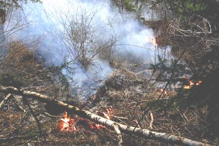 火情就是命令,接到火警后,迭部林業(yè)局和迭部縣召開緊急會議,緊急抽調(diào)人員前往救火,并成立了由迭部縣縣長楊志才、迭部縣林業(yè)局局長黃志洋為臨時(shí)總指揮的現(xiàn)場指揮部,設(shè)置滅火、后勤、偵察、醫(yī)療救護(hù)等小組,緊急投入撲救工作。在進(jìn)入崗嶺溝的不遠(yuǎn)處,記者看見濃煙彌漫,隱天蔽日,濃烈的焦糊味夾雜著絲絲煙塵撲面而來,在崗嶺溝兩邊的山坡上,不時(shí)會看到?jīng)_天火光,沿著溝底前行,沿途被大火燒毀的林地里橫七豎八躺著許多百年古松的殘根斷枝,慘狀不堪入目。