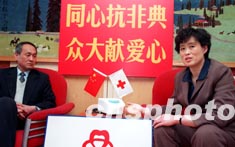 廣州本田汽車有限公司總經(jīng)理門脅轟二代表公司3800多名員工把100萬元人民幣的支票交給了廣州市紅十字會,這筆捐款將用于防治非典型肺炎研究的專項(xiàng)基金。