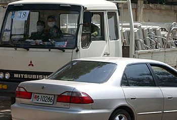 軍車穿梭往來準備向“非典”開戰。