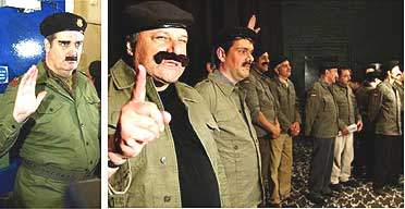 倫敦時(shí)間上午11點(diǎn)(北京時(shí)間19點(diǎn)),倫敦西區(qū)哈默史密斯“河畔攝影場”門外14名演員排起了長隊(duì),其中《衛(wèi)報(bào)》的工作人員斯蒂芬·莫斯也在隊(duì)伍中,他們是來面試的,看起來他們都長得有幾分像薩達(dá)姆,頭上戴著黑色貝雷帽,卡其布的軍裝夾克,而且都有黑色的假胡子,最令人驚奇的是居然有一位女士也來競爭扮演薩達(dá)姆的機(jī)會,她化妝后也與薩達(dá)姆有點(diǎn)像。