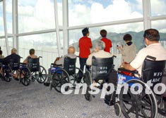 日前,在香港國際機場候機大廳,為照顧老人和殘疾人便利登機,機場提供的輪椅受到乘客歡迎。中新社傳真 錢興強 攝