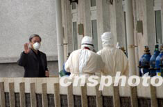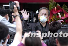 五月十六日下午,與SARS抗爭了二十四天的中國內地著名電影導演謝飛康復出院。謝飛因患SARS于四月二十二日進入北京地壇醫院接受治療。中新社記者:張煒