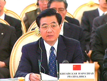 上海合作組織第三次元首峰會5月29日發表《莫斯科宣言》。中國國家主席胡錦濤表示,中國愿同其他成員國一道,一如既往地推進上海合作組織的發展進程,共同促進地區和世界的和平、發展和繁榮。