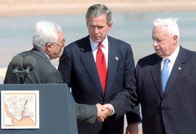 布什主持了巴勒斯坦自治政府總理阿巴斯與以色列總理沙龍之間的峰會,隨后結束就任總統(tǒng)兩年半來首次親自到中東進行謀和的訪問。