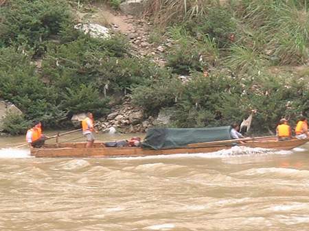“響聲很大,很響。開始我還想這船怎么那學(xué)生來撞著玩呢。”羅安忠回憶說。船橫起來后不到兩分鐘,就折斷在礁石上了,船上的幾十名學(xué)生密密麻麻地幾乎全部掉進(jìn)水中,被湍急的河水沖洗走,只剩下一小部分人幸運(yùn)地站到河灘中間露出的礁石上面,等待施救。