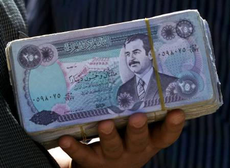 伊拉克中央銀行的官員透露說,由于第納爾大量缺貨,所以他們不得加班加點地印制新的鈔票。新印的是面值10000第納爾的紙鈔。這種紙鈔薩達姆政權去年就想推行,但考慮到它很容易被假造,而且由于薩達姆政權倒臺時有大量的鈔票被搶,所以大家都害怕它會很快貶值。