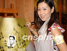 曾獲香港國(guó)際親善小姐稱號(hào)的殷莉,六月十四日出席在香港舉行的「龍的心、共抗炎,李小龍慈善珍藏電話卡公開發(fā)行」活動(dòng)。錢興強(qiáng) 攝