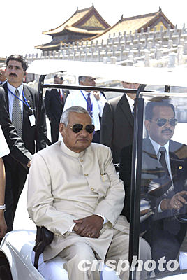 “這是很值得參觀的地方,”瓦杰帕伊說。二十四年前,時任印度外長的瓦杰帕伊第一次訪問中國時曾到過故宮。今天,再次來到這里,瓦杰帕伊已是滿頭白發。