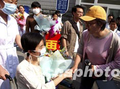 香港鳳凰衛視記者劉海若六月二十七日來到北京宣武醫院,采訪這家專治非典重癥患者醫院的最后一名痊愈者出院。中新社記者:賈國榮