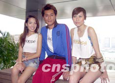 影視紅星古天樂6月27日在香港出席首張寫真AVCD發(fā)布會,大會特別安排美女相伴左右為他造勢。中新社記者 鄧慶樂
