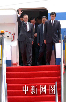 上午十一時四十分許,溫家寶乘坐的專機平穩降停香港國際機場。他微笑著走出艙門,向歡迎的人群揮手致意;在走下舷梯中途,他再度揮手。