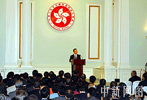 六月二十九日,國務(wù)院總理溫家寶在香港禮賓府發(fā)表講話,并強(qiáng)調(diào)中央政府毫不動搖支持一國兩制。中新社記者 潘索菲 攝