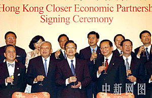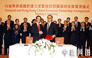 中新網6月29日電 中國國務院總理溫家寶與香港特區行政長官董建華今日(29日)下午主持了“內地與香港關于建立更緊密經貿關系的安排”(CEPA,以下簡稱“安排”)的簽署儀式。
