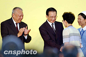 國務院總理溫家寶6月30日出席表揚醫護人員成功抗炎大會,向在抗擊SARS中以身殉職的醫護人員家屬表示慰問。洪少葵 攝