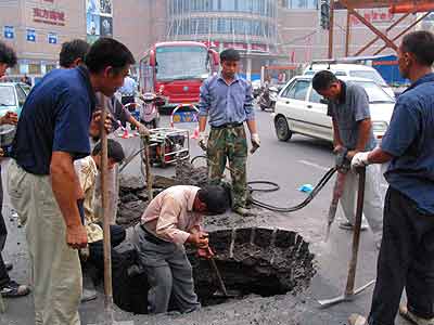 據介紹,南京的地質狀況較復雜,地下水位高,有較多的古河道及大量含水砂層、斷裂破碎帶、軟流塑地層等不同地質情況。昨日塌陷的兩處位于新街口鬧市區,一處在三元巷加油站門口,另一處在新街口轉盤的東南角。兩處塌陷時間大約在下午4時左右,塌陷后沒有造成人員傷亡,但給新街口的交通造成一定影響。市政部門立即在塌陷處設置了警示標志,并有交警在現場指揮交通。下午5時多,南京市政110的趕來搶修。