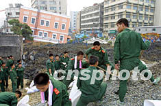 傍晚五點半左右,這里的武警官兵開始又一輪搬運沙袋,在臨時沙堤內側再筑起一道防線,以加固臨時沙堤。現場人員稱,目前有關施工人員和武警官兵都在與潮汐搶時間,要在黃浦江又一次漲潮之前,完成堤岸加固,以控制險情進一步發展。