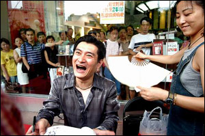 一本《誰搞垮了演藝事業(yè)》引爆了整個娛樂圈,昨天“罪魁禍首”黃安卻安然地來到南京書城為此書作簽售。下午2點半,黃安準時出現(xiàn)在書城門口,他的成名曲《新鴛鴦蝴蝶夢》也即時響起。聞訊而至的“黃迷”們把現(xiàn)場圍了個水泄不通,而主持人出身的黃安更是把氣氛調(diào)節(jié)得火爆異常。雖然現(xiàn)身僅短短的10幾分鐘,但黃安卻向記者們又抖出了許多猛料。