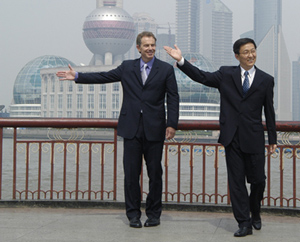此前有媒體曾報道,探討合作新領域、確定投資新項目等是布萊爾訪華的亮點。而發展與上海的經貿合作關系,更是布萊爾此番滬上行的的主旨。無論是與上海市長韓正的會見,還是在中英企業家峰會上的演講中,這一點都尤為凸顯。
