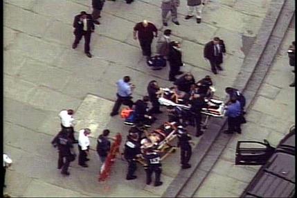兩名受害人已送往紐約大學下城醫院。救護人員告訴電臺,兩人并肩倒在二樓陽臺,同樣是胸部中彈。
