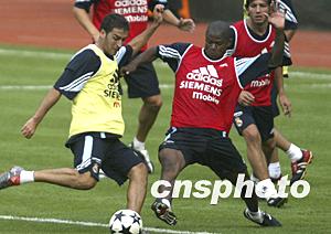 在訓(xùn)練賽的上半段,主力陣容完全控制了場上局勢,并由羅納爾多、菲戈和齊達(dá)內(nèi)連續(xù)攻入三球。下半段比賽中,替補陣容加強了攻勢,穆尼蒂斯扳回一球,將最終比分定格為三比一。