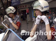湖南省郴州市城管綜合執法支隊的女子城管執法督察員八月周末整裝上崗。她們負責城市市容、城市規劃、園林綠化、市政設施、戶外廣告等監督管理。中新社記者:鄒憲