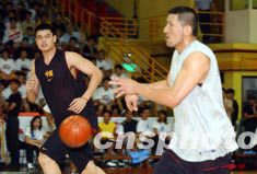 NBA超級巨星姚明和巴特爾,8月5日在香港修頓球場展開訓練,備戰6日晚的澳洲勁旅墨爾本老虎隊。