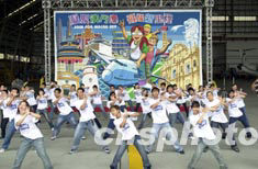 圖為澳門青年在儀式上跳起熱烈歡快的舞蹈慶祝圖畫繪制成功。