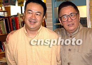 香港藝人黃沾、(右)高志森,八月十一日出席在香港舉行的李暉《簡易太極圖書》發布會。中新社記者:錢興強