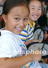 香港堅(jiān)尼地小學(xué),八月十一日在香港舉行學(xué)習(xí)鼓樂活動(dòng),圖為小朋友興高采烈練習(xí)擊鼓節(jié)奏。中新社記者:錢興強(qiáng)
