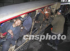 山西大同市杏兒溝煤礦第六批搜救隊員在瓦斯爆炸現場連續工作十小時,搶救依然失蹤的5名礦工。圖為搜救隊員13日疲憊不堪地走出坑口。杏兒溝煤礦“八·一一”瓦斯爆炸已造成三十七人死亡。作者:王煥偉
