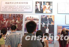 震驚全國的劉涌黑社會性質組織案十五日終審,首犯劉涌被改判死緩。圖為正在北京中國國家博物館舉行的全國嚴打斗爭展覽上,有關劉涌案的介紹受到關注。中新社記者:張煒