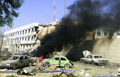 當地時間8月19日16:40左右(北京時間8月19日20:40左右),設在伊拉克首都巴格達運河酒店的聯合國辦事機構總部發生強烈爆炸,造成三人死亡,數十人受傷。有證據表明爆炸是汽車炸彈造成的。