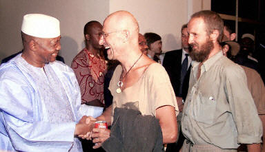 8月19日,馬里總統杜爾(左一)在巴馬科接見獲釋的歐洲人質。