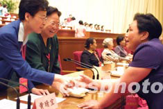 中國(guó)婦女第九次全國(guó)代表大會(huì)二十五日在北京人民大會(huì)堂進(jìn)行第二次全體會(huì)議,采用差額選舉推選二百五十三名執(zhí)行委員會(huì)委員。中新社記者:廖文靜