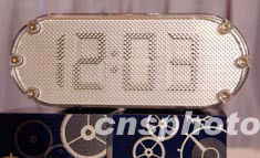 一款嶄新設計的凸字鐘脫穎而出榮登第二十屆香港鐘表設計比賽公開組冠軍。圖為八月二十六日,該冠軍鐘供香港媒體參觀。作者:潘索菲