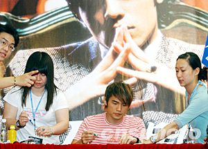 組圖:臺(tái)灣歌星周杰倫為歌迷簽名