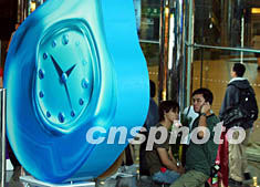 圖:香港不畏臺風(fēng)緊羅密鼓為鐘表展開幕布展