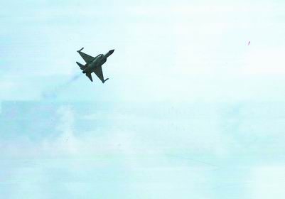 “地面,地面,飛機狀態良好,請求通場飛行第二圈!”13:06,遠天傳來戰機的轟鳴。仰頭看去,一只修長、纖巧的銀雁優雅而輕盈地掠過碧空。4分鐘后,戰機第二次由遠而近距離地面2500米左右穩健低飛,起落架仍沒有放下,看來戰機將進行第三圈通場飛行。13:13,戰機終于開始緩緩向下俯沖。
