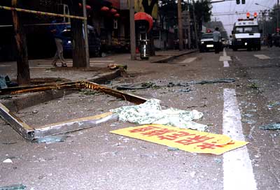 據(jù)北京娛樂信報(bào)報(bào)道,肉餅店臨街的一扇門和三個(gè)窗戶全部被炸碎,馬路中間全是炸飛的碎玻璃,并有門窗框被炸飛到馬路對(duì)面。酒吧和肉餅店的所有窗戶都被炸壞。