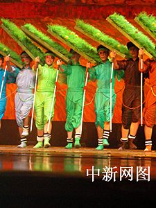 第三,今晚的演出更加職業化、更加專業化、藝術感染力更強。如盲人舞蹈《去看春天》,一改以往的悲悲凄凄,十幾位正當花季的少男少女,雖然他們眼睛看不見,但手手相牽,朝氣蓬勃地走向春天。作品在表現手法上比較夸張,風格也充滿了理想主義,蕩漾著一種凱旋般的輝煌感。