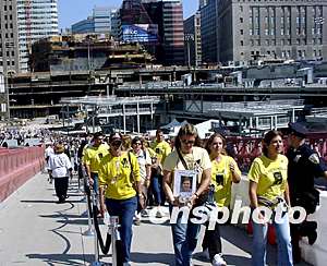 紐約十一日上午在世貿廢墟舉行“九一一”兩周年紀念儀式。中新社記者:趙海燕