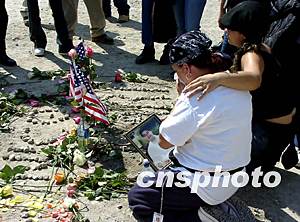 罹難者家屬在紀念儀式后走進世貿廢墟最底層悼念親人。中新社記者:趙海燕