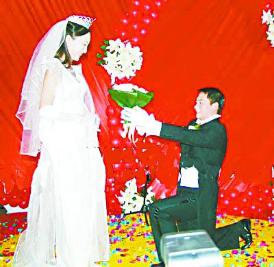 新娘張倍寧是一位歌手,當主持人問到新娘最滿意自己演唱的歌曲是什么名字時,她回答:“愛我的人請舉手”,新娘的話音剛落,李小雙就將自己的左手舉了起來,博得了在場親朋好友的一陣熱烈掌聲。