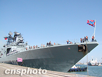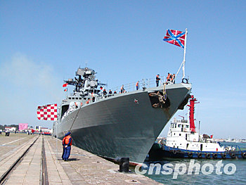 9月20日,俄羅斯海軍“潘捷列耶夫海軍上將”號大型反潛艦,在太平洋艦隊副司令科涅夫·亞歷山大·瓦西里耶維奇中將率領下,抵達青島港。鄒山 攝