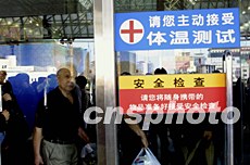 中國“十一”國慶長假前夕,北京西客站設立的體溫檢測點隨時自動監測過往旅客的體溫狀況,保障節日出行者的健康。中新社記者:王瑤