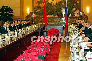 歡迎儀式后,中俄兩國總理舉行了正式會談。