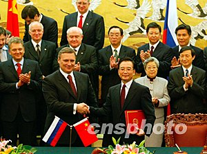 中新網9月24日電 國務院總理溫家寶今天上午在人民大會堂北大廳主持儀式,歡迎出席完上海合作組織成員國總理第二次會晤的俄羅斯聯邦政府總理卡西亞諾夫正式訪華。