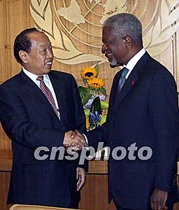安南感謝中國多年來對聯合國的有力支持,高度評價了中國在解決全球性問題,特別是在實現聯合國千年發展目標方面發揮的建設性作用。他還對中國成功控制“非典”表示祝賀,贊揚中國為全球防治艾滋病作出了貢獻。