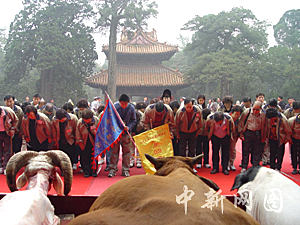 在今年的參禮團(tuán)中,二十多名身著統(tǒng)一寶石藍(lán)色“博士服”的“印度尼西亞孔子朝圣修道團(tuán)”格外引人注目。他們是印度尼西亞泗水文廟理事會的成員。“泗水”是印度尼西亞第二大城市,也是印度尼西亞東爪哇省的省會城市。據(jù)印度尼西亞泗水文廟理事會主席付孫銘先生介紹,泗水文廟建于一八八三年,是當(dāng)年康有為先生提議而建,主要供奉著孔子及其弟子七十二位賢人。付孫銘先生是第四次參加祭孔活動,他深情地說:“明年我們要組織更大的朝圣團(tuán)前來祭孔,我希望海外華人都來祭拜自己的祖宗”。(完)