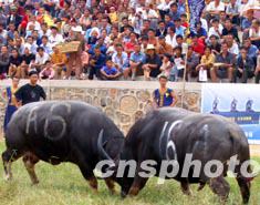 貴州省凱里市在國慶黃金周舉辦的首屆東方斗牛大賽由康偉經貿發(fā)展公司承辦,當地政府嘗試以此促進振興旅游。中新社記者:宋吉河
